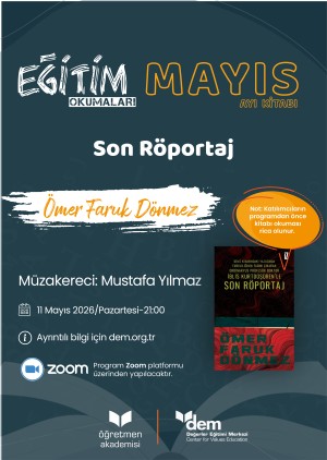 Eğitim Okumaları programının Nisan ayı oturumunda Son Röportak (Ömer Faruk Dönmez) kitabı müzakere edilecektir.